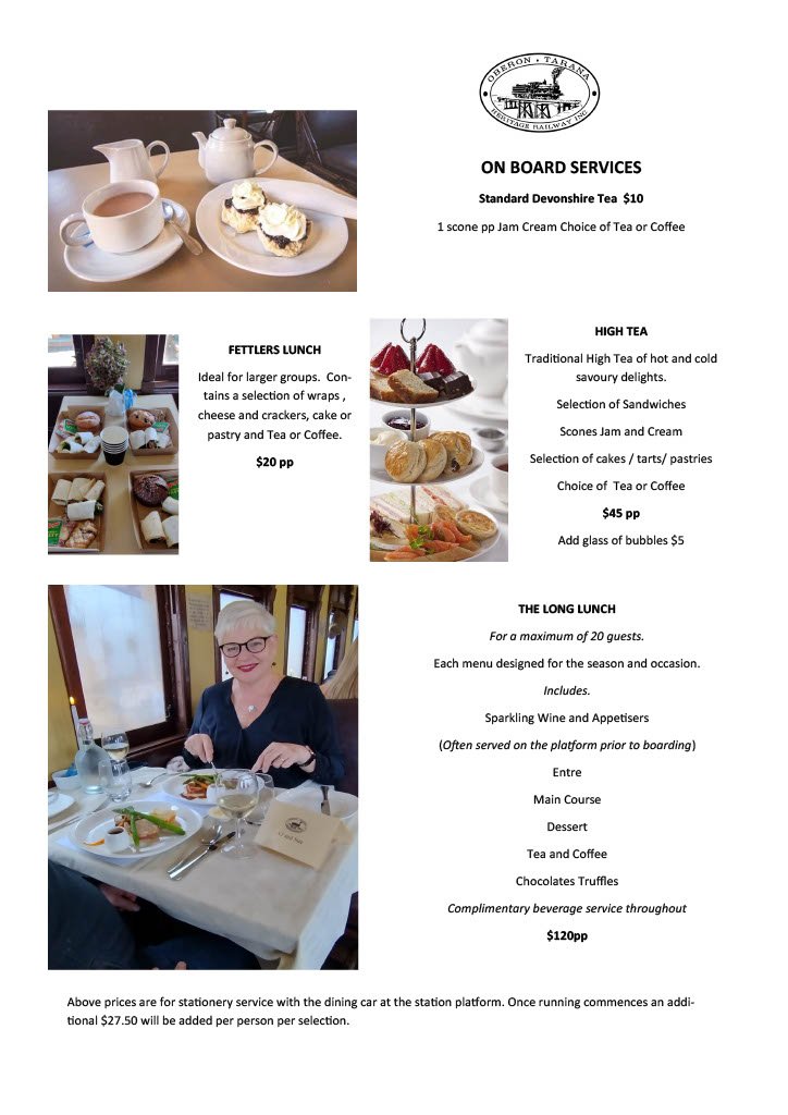 There will be morning teas and light lunches available in the heritage carriage at the station.